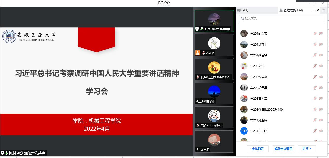 分别通过线上与线下方式,组织开展了习近平总书记考察中国人民大学重要讲话精神学习会,学院本科生和研究生入党积极分子、党员参加了学习会,学习会由学院辅导员张敏主持。