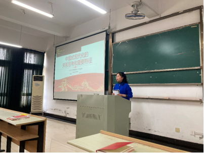 许老师以《中国式现代化的关系思考和重要特征》为题,围绕“中国式现代化”展开宣讲内容。首先,许老师深入剖析中国式现代化与“中国的现代化”“中国式现代化道路”“全面建设社会主义现代化国家”“全面建成社会主义现代化强国”四者之间的关系,深入浅出地解释其意义和异同之处。而后,从现代化的一般性和中国式现代化的特殊性两方面,总结了中国式现代化的重要特征,使全体学生党员对“中国式现代化”有了更加深入的理解。期间,许老师引经据典,生动活泼;全体党员认真聆听,做好笔记,宣讲气氛十分热烈。