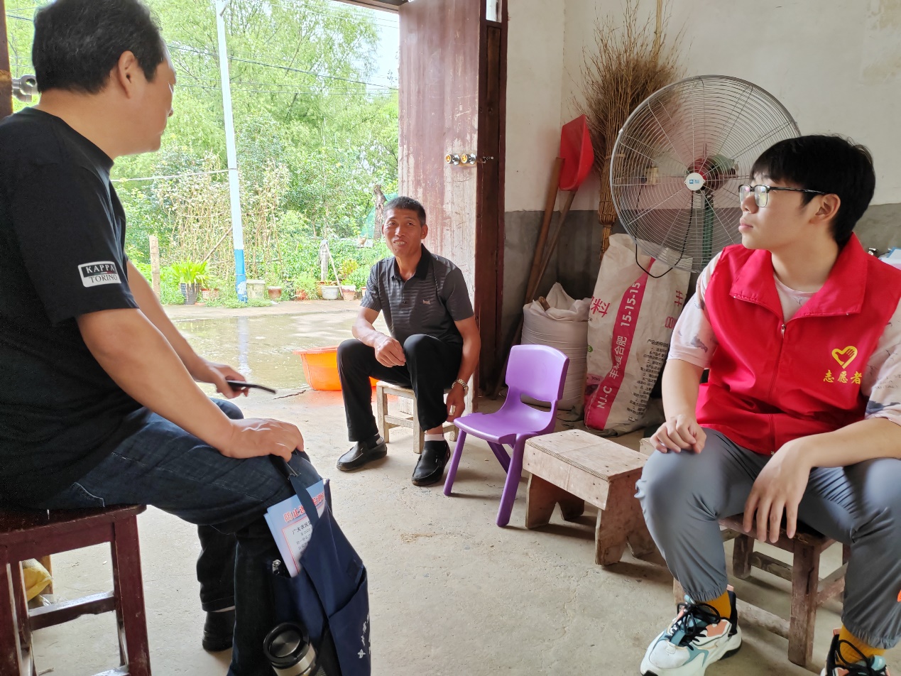图为村委带领实践队走访村民