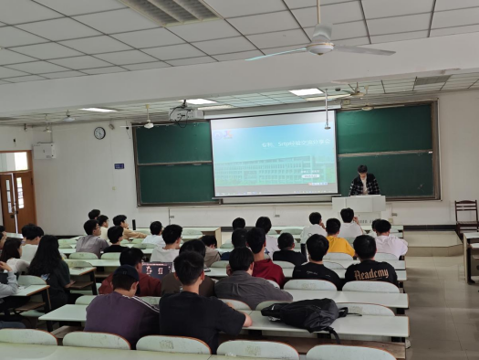 于佳山校区教三南301教室开展科技创新能力提升系列活动之专利与项目申报经验交流会,交流会由2020级优秀保研学子吴金龙同学主讲,学院2023级学生参加了交流会。