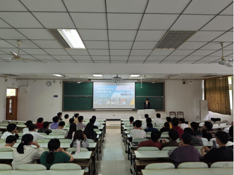 于佳山校区教三南301教室开展“见贤思齐”经验交流分享会,本次交流分享会由2023级辅导员彭勇刚、张敏主持,2020级优秀保研学子、十佳班集体车203班主要学生骨干吴金龙同学主讲,2023级新生参加交流会。