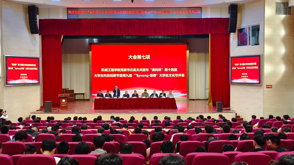 “英科杯”第十四届大学生科技创新节暨第九届“飞young·青春”大学生文化节在秀山校区大学生活动中心隆重开幕,校学工部、教务处、创新创业学院负责人、学院领导班子和企业代表出席开幕式,学院各系主任、全体辅导员、各年级学生代表400余人参加开幕式。