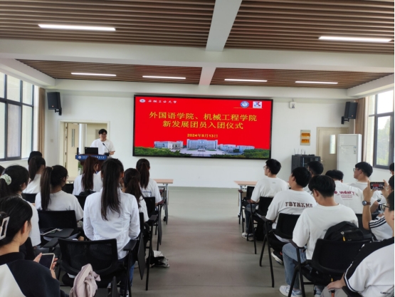 团委副书记陈洁和两个学院30名新发展团员参与仪式,仪式由外国语学院团委书记卜齐春主持。