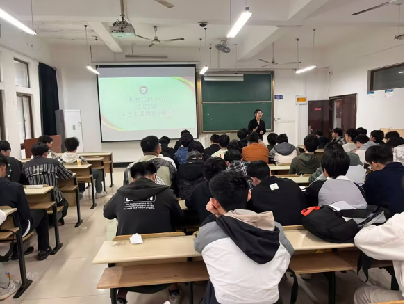 会议伊始,濮莹萍结合近期高校典型案例,围绕防诈骗、宿舍安全、实验室规范、交通安全、心理健康等关键领域展开讲解。针对校园高发的电信网络诈骗问题,通过播放反诈宣传视频、剖析诈骗手段,提醒同学们“不轻信、不转账、不透露个人信息”;在宿舍安全方面,重点强调违规电器危害及火灾逃生常识,要求全体学生严守校规,杜绝安全隐患;针对机械专业特点,特别讲解了实验室操作规范与应急处理流程。
