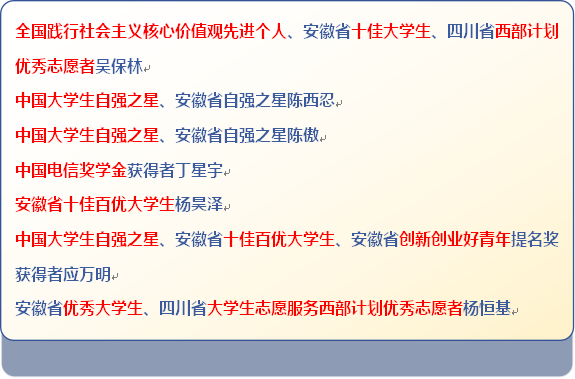 近五年,涌现出了全国践行社会主义核心价值观先进个人、中国大学生自强之星等一批优秀学子;学院毕业生因基础扎实、能力突出深受用人单位欢迎,就业率一直名列学校前茅。