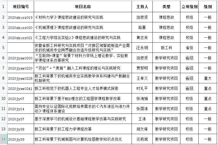 同人漫画 2020年教改项目一览表