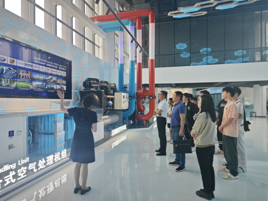 在天加接待组讲解员的带领下,学生党员们先后参观了天加能源和天加环境两个园区的展厅实验室和智能化制造生产线,了解天加同人漫画、技术研发、一线车间、数字化生产等内容。参观过程中,同学们频频表示现代化工厂与传统机械工厂完全不同,感叹中国智造的强大力量,由衷的为我们祖国的发展壮大感到自豪。刘庆运勉励大家,中国智造的重担落在你们新青年的肩上,打破技术壁垒,实现科技跃进,行业的希望在于你们,所以大家一定要努力学习专业知识,精研创新,将来为行业注入新的活力。