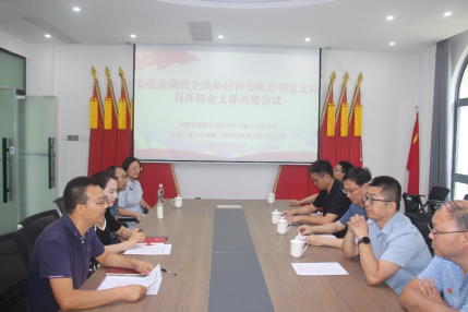党委委员郑近德和安徽盐湖特立镁公司领导刘慧林相互介绍了各自单位的发展历程和党建工作情况,双方就党建与事业融合发展及产学研合作等方面提出了总体规划和要求,双方签署了党支部共建合作协议,推进支部共建活动规范化和常态化。会上,安徽盐湖特立镁新材料有限公司党支部支委委员、技术质量部副经理赵永成领学了习近平总书记在主持中共中央政治局第十四次集体学习会议上的重要讲话精神,机械工程系党支部书记魏志刚讲了题为“学好用好《中国共产党纪律处分条例》,为创新发展保驾护航”的党纪学习教育党课。