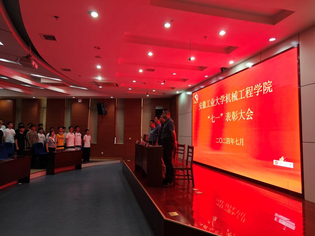 “七一”表彰大会在秀山校区图书馆一楼报告厅举行。学院党委领导班子、全体教师党员、受表彰的先进集体和个人、全体新发展党员和学生党员代表参加大会。会议由院党委副书记、纪委书记、副院长陈庆林主持。
