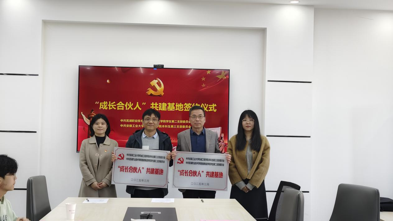 会上,同人漫画 本科生第三党支部与芜湖职业技术学院智能制造学院学生第二党支部签署了《“成长合伙人”共建基地合作协议》,明确将在主题党日联办、党员教育共学、志愿服务同行等方面深化合作。