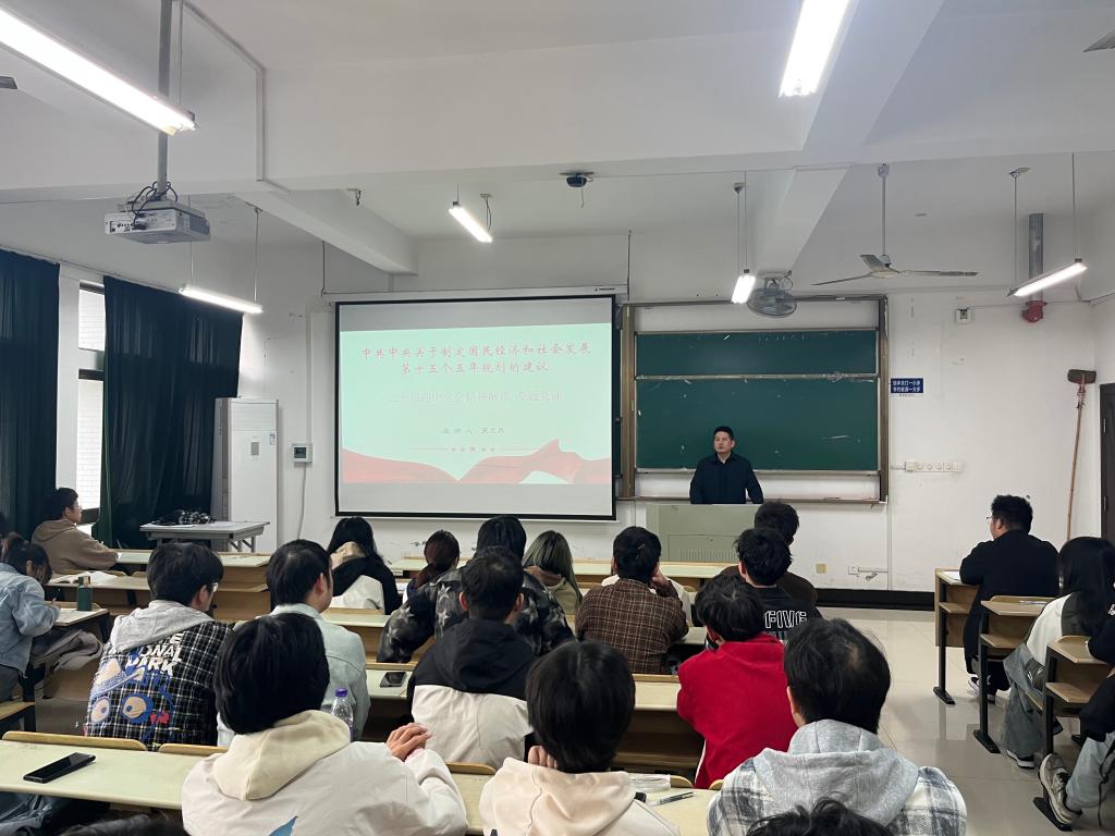 随后,吴文兵为入党积极分子讲授深入贯彻党的二十届四中全会精神专题党课。他结合全会审议通过的《中共中央关于制定国民经济和社会发展第十五个五年规划的建议》(以下简称《建议》),从历史维度切入,指出党的二十届四中全会是在“十四五”成就基础上、迈向2035年基本实现社会主义现代化目标的关键节点召开的重要会议。《建议》的通过,标志着我国进入“夯实基础、全面发力”的新阶段。他指出,“十五五”时期是分阶段推进中国式现代化的攻坚期,必须以高质量发展为主线,统筹教育、科技、人才三大战略资源,为全面建设社会主义现代化国家提供持久动力。他强调,作为新时代青年,你们既是‘十五五’规划的见证者,更是参与者。全会提出的七个主要目标——从科技自立自强到美丽中国建设,从人民生活品质提升到国家安全巩固,每一项都与你们的成长息息相关。他鼓励入党积极分子将个人理想融入国家发展大局,在科技创新、乡村振兴、社会服务等领域展现青春担当。