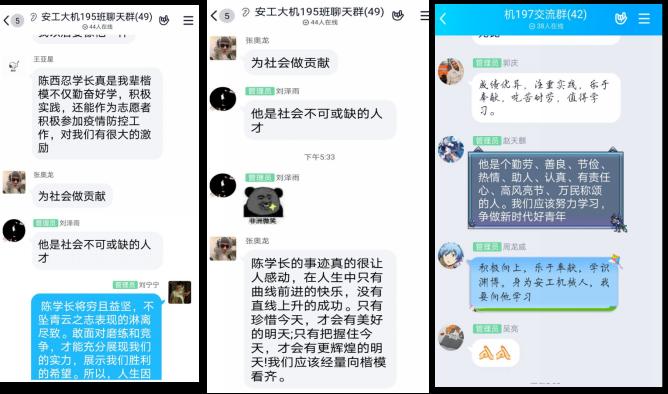 宣讲活动上,陈西忍同学主要与同学们分享了他在疫情防控期间开展的志愿服务活动,并介绍了自己自立自强的大学生涯,引导团员青年应正确对待、科学应对疫情,带头落实各项疫情防控措施,助力打赢全国疫情防控阻击战。宣讲会后,同学们纷纷表示获益匪浅,学长不仅勤奋好学,还甘于奉献,是大家的榜样。