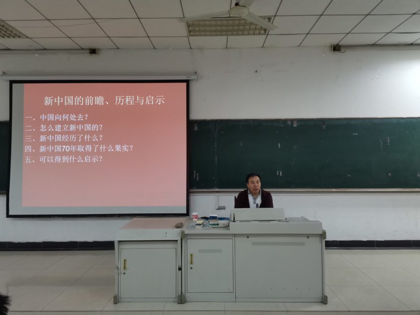 在佳山校区第三教学楼103教室开展“新中国成立70周年的历程和展望”讲座,讲座由校关工委副主任宋洪生主讲,学院全体2019级新生参加了此次讲座。