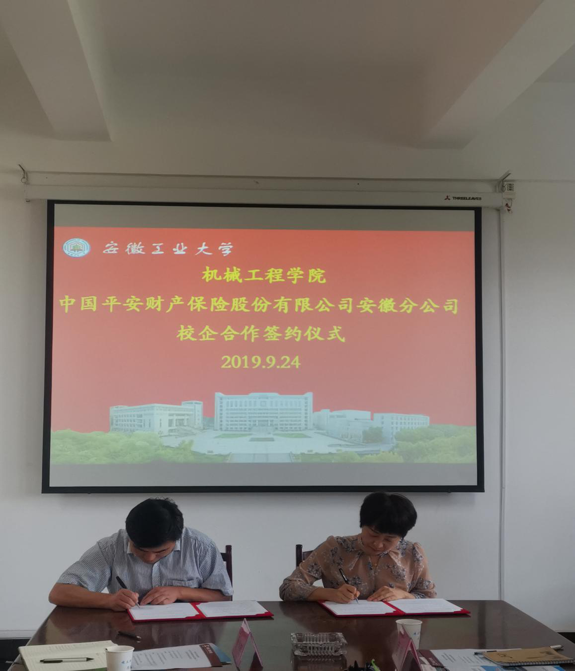 与中国平安财险股份有限公司安徽分公司“校企合作”签约仪式在机械楼302会议室举行。中国平安财险股份有限公司马鞍山中心支公司总经理陈青、中国平安财产保险股份有限公司安徽分公司人力资源部经理孔凡荣、安徽分公司车意理赔部经理吴刚、安徽分公司车意理赔部车物管理团队经理朱佳、安徽分公司人力资源部发展规划室经理方业成、马鞍山中心支公司理赔部经理张永鹏、同人漫画