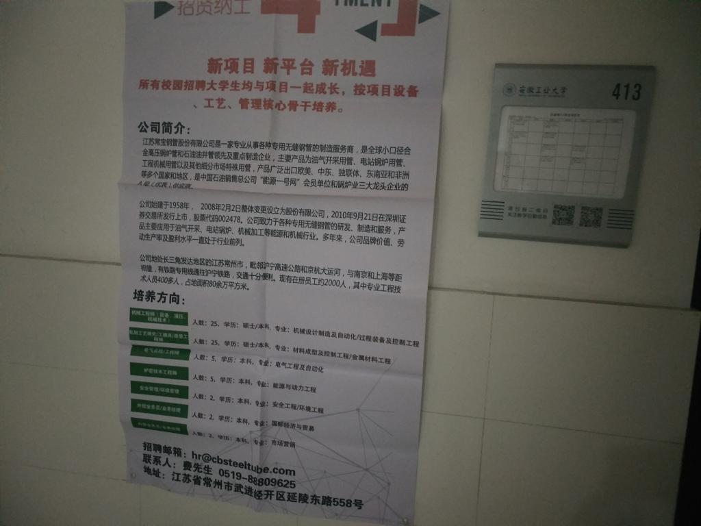 此次常宝钢管股份有限公司招聘的岗位主要有螺纹设计与研究、机械工程师、机械点检、电气点检、电气工程师、机械设备维护、工艺开发及质量技术管理等,对机械、电气专业毕业生有大量的需求。