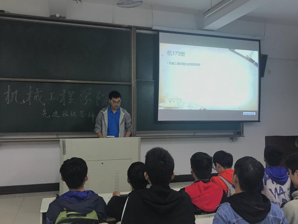 “先进班级”“十佳班级”答辩在秀山校区东教一顺利举办,本次答辩的评委有机械学院团委副书记费白露,院团委学生会学习部部长冯焘,院团委学生会组织部部长王彪。参与本次答辩的共有10个班级,分别是机工163、车162、机164、机169、机工171、机工173、机171、机172、机173、机174。