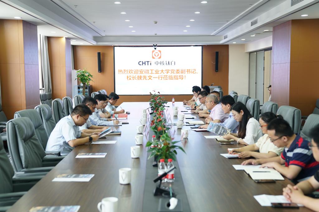 魏先文一行先后来到中核钛白集团、鑫德斯特(安徽)有限公司进行实地考察,参观了企业展厅、实验室、车间等,了解企业的发展历程、文化理念、特色产品、人才需求等。