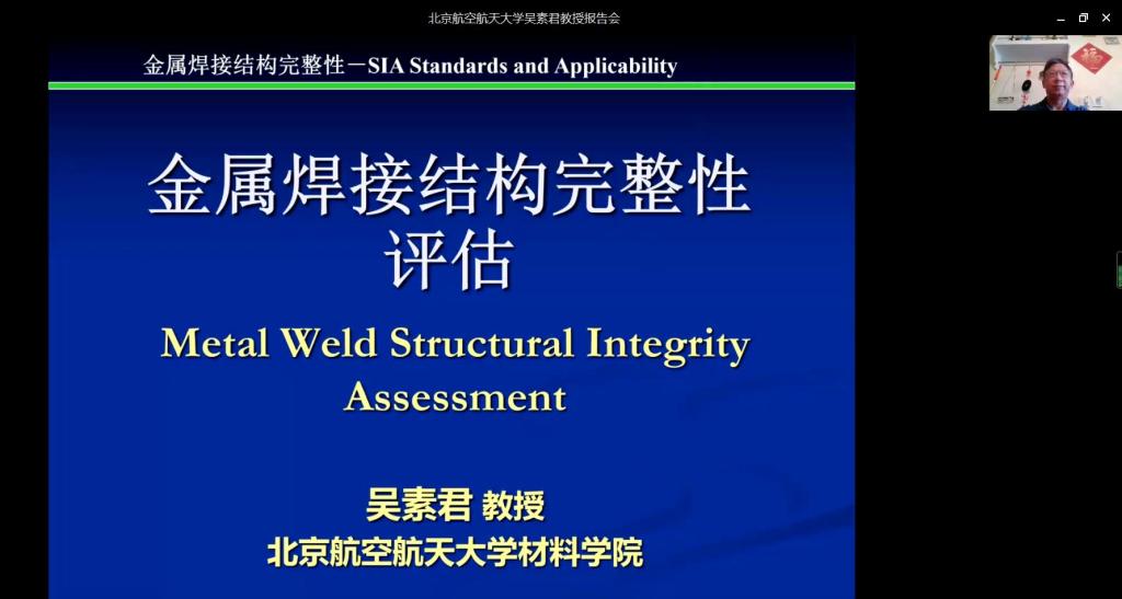 吴素君教授从典型焊接接头和常见焊缝形式出发,引出焊缝中的常见缺陷,以及由缺陷导致的构件脆断、疲劳破坏和腐蚀破坏等不良工程现象。然后,吴教授引用英国皇家工程院J. F. Knott院士对结构完整性评估的定义,着重介绍了结构完整性评估的概念、评估所依据的基础理论以及评估所需要的三大要素,并利用发动机机匣安全性评估案例介绍结构完整性评估和损伤容限分析的应用流程等精彩内容。