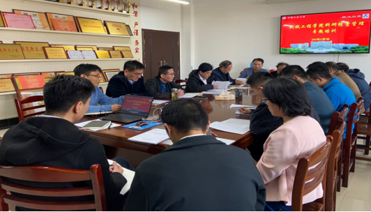 举行了科研经费管理专题培训,培训按集中和分组两种形式进行。学院领导、系主任、支部书记先集中到会议室学习,会议由科研副院长饶思贤主持。饶思贤传达了学校科研经费管理专题培训的重要性、必要性。科研经费事关每位科研老师,项目类型繁多,各有其资金管理办法,要求每位老师认真学习,特别强调更不可出现科研经费违规使用现象。