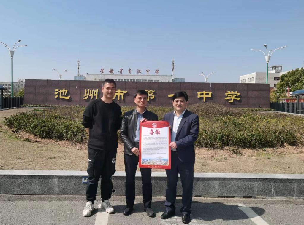 党委副书记、纪委书记、副院长李克明一行深入池州市青阳中学、池州市第一中学、池州市第八中学,亲自将喜报送达三位校长手中。