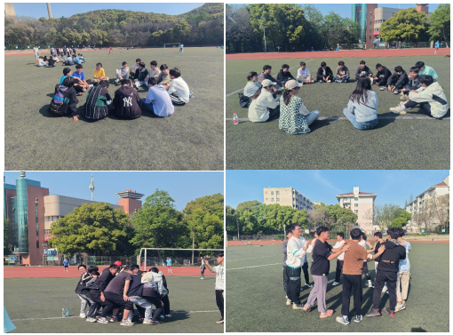 第一个部分是“你抓我逃”,同学们围成一个大圈,右手抓,左手逃,通过热身活动减少了同学间的紧张感和陌生感;第二部分是“松鼠与大树”,躲避樵夫的大树与躲避猎人的松鼠在场上跑来跑去,营造了轻松愉快的氛围;第三部分是“姓名滚雪球”,独特的自我介绍方式,让小组的同学对各自印象深刻;第四个部分是“坚固的人椅”,同学们围成圆圈,彼此相依,增进了彼此间的信任感;第五个部分是“我们是最棒的团队”,同一小组的同学在一次次尝试中,不断突破,让同学们再次感受到了集体的强大力量。