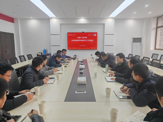 在机械楼302会议室召开本科教育教学审核评估工作布置会,学院教学副院长、系(室)主任和副主任、教学秘书参加会议,会议由教学副院长饶思贤主持。