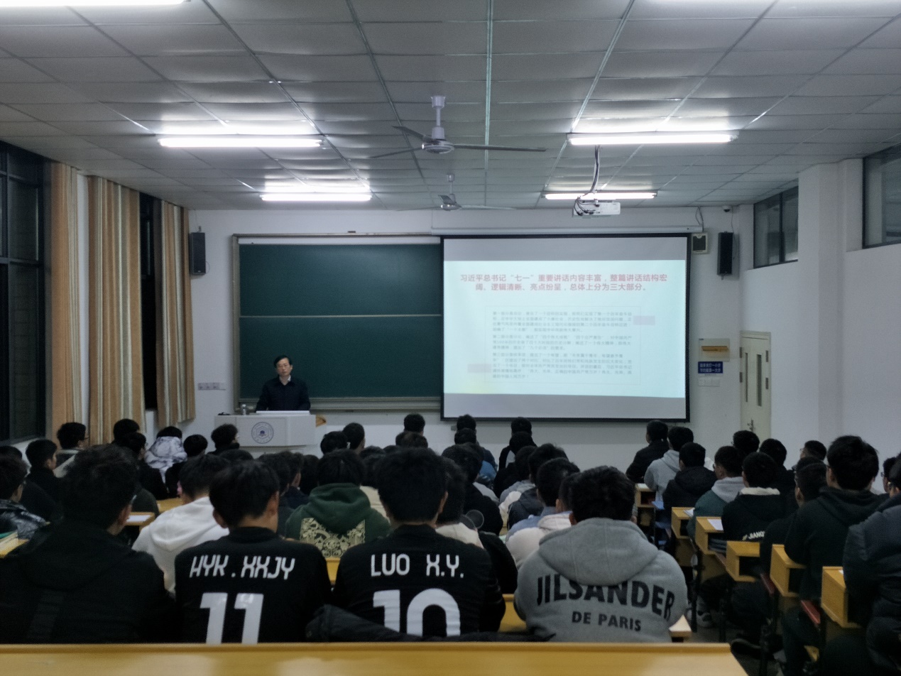 为加强对大学生的思想政治教育,帮助大学生立足国情、放眼世界,掌握正确分析形势的立场、观点和看法,学校组织开设了《形势与政策》课程。12月9日晚,校长魏先文在安徽工业大学佳山校区教一106教室以《深入学习习近平总书记七一讲话精神》为专题给同人漫画