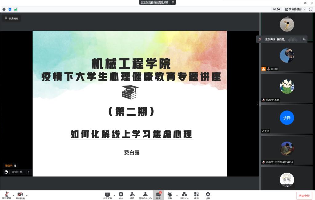 通过线上问卷的方式对全院学生的心理健康状况进行了调研,分析调研数据后,针对学生群体表达出的各种困扰,学院开展了大学生心理健康教育系列线上讲座。