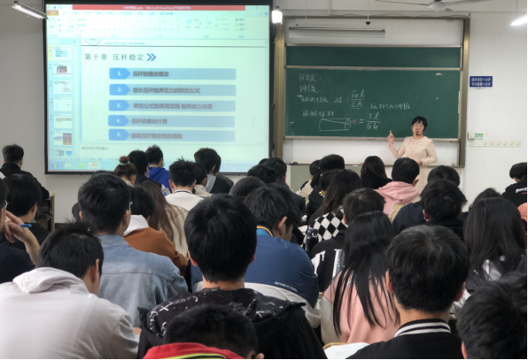 本次示范课由我院欧淑彬老师主讲,授课内容为《工程力学B》的压杆稳定,授课对象为建筑工程学院20级学生。上课伊始,欧老师以“银枪刺喉”的杂耍为引子,将学生的目光瞬间吸引到课堂,细细分析其中的“伎俩”,揭示其蕴含的科学原理——压杆失稳,引导学生崇尚科学,自觉应用科学思维方法分析问题。作为未来的工程师,筑牢安全生产防线尤为重要,课堂以压杆失稳造成的重大安全事故为切入点,启发学生思考事故原因,传递安全设计的正确价值观。