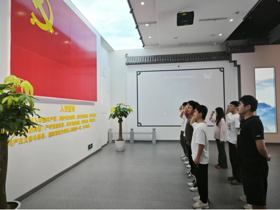 最后,全体党员面向党旗,高举右拳,庄严宣誓,重温入党誓词。