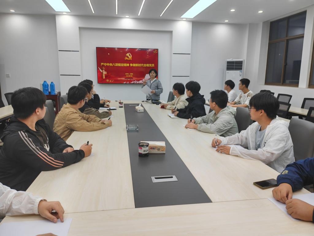 本科生第三党支部书记陈洁以《严守中央八项规定精神 争做新时代合格党员》为支部全体党员讲党课。本次党课聚焦作风建设与党员使命担当,通过理论剖析与案例结合,引导青年学子筑牢思想根基、锤炼党性修养。