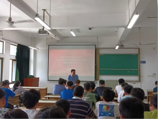 研究生第三党支部在机械楼407教室开展学习贯彻习近平新时代中国特色社会主义思想主题教育专题组织生活会会前集中学习,支部书记董春辉主持会议,支部全体党员参加学习。