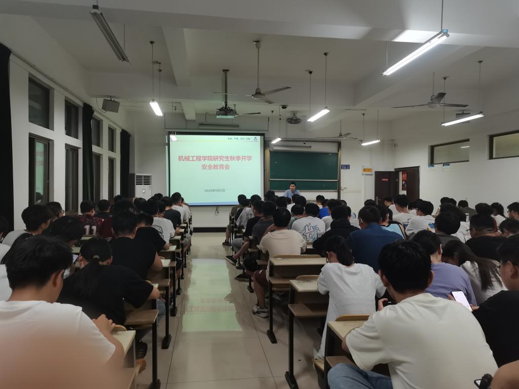 在机械楼403教室分批次召开秋季学期研究生安全教育大会。会议由研究生辅导员主持,全体研究生参加会议。